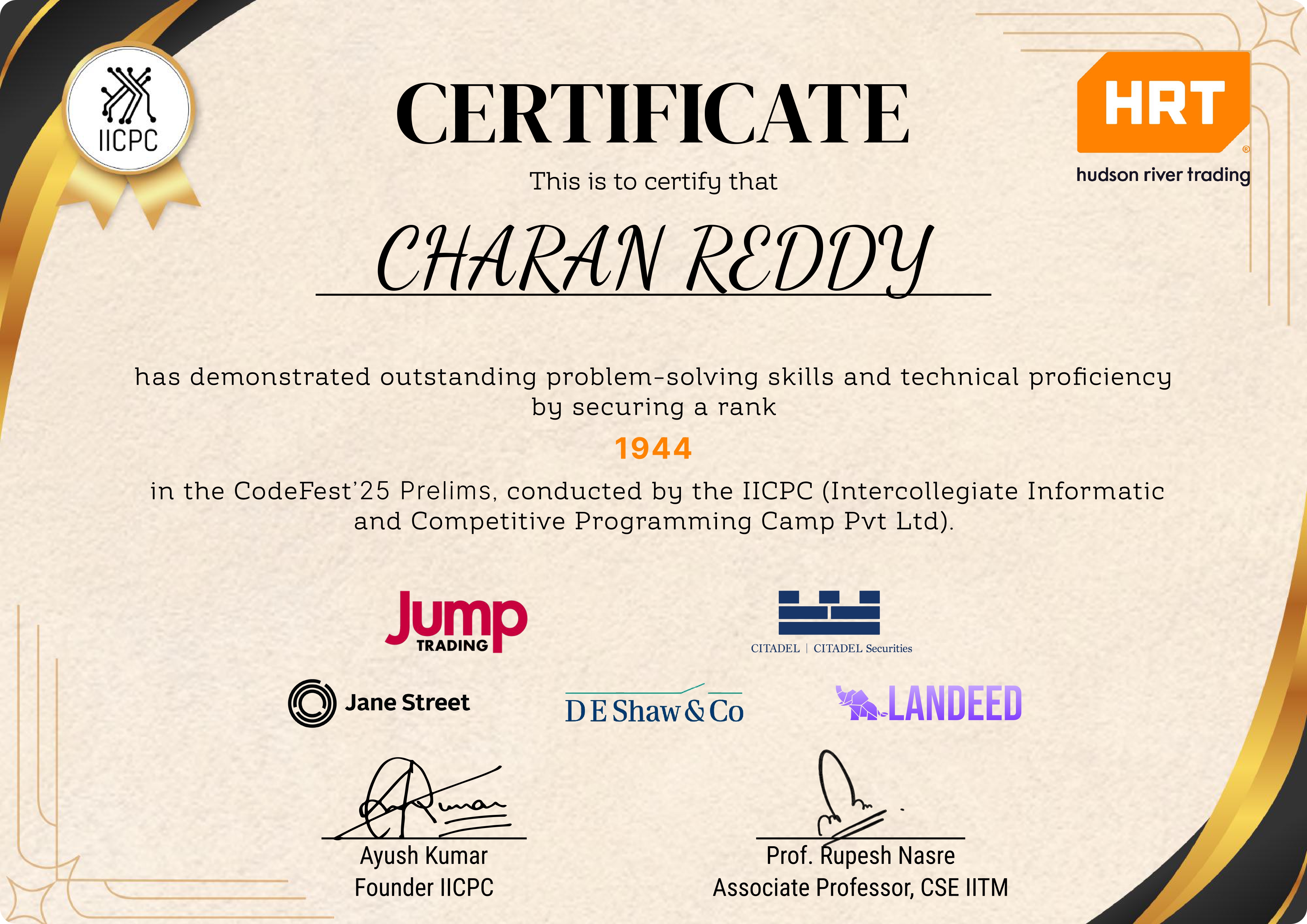 - Ranked 1944 in IICPC Prelims 2025